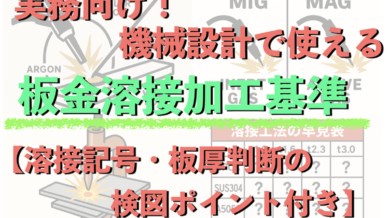 板金溶接は、産業設備や装置のフレーム・カバー・ブラケットを作るうえで欠かせない加工です。 しかし、機械設計者として詰まることはありませんか?この記事は「これだけ覚えれば実務で使える」をコンセプトに、機械設計エンジニアとして10年以上の経験を踏まえ、溶接加工の設計基準をまとめました。