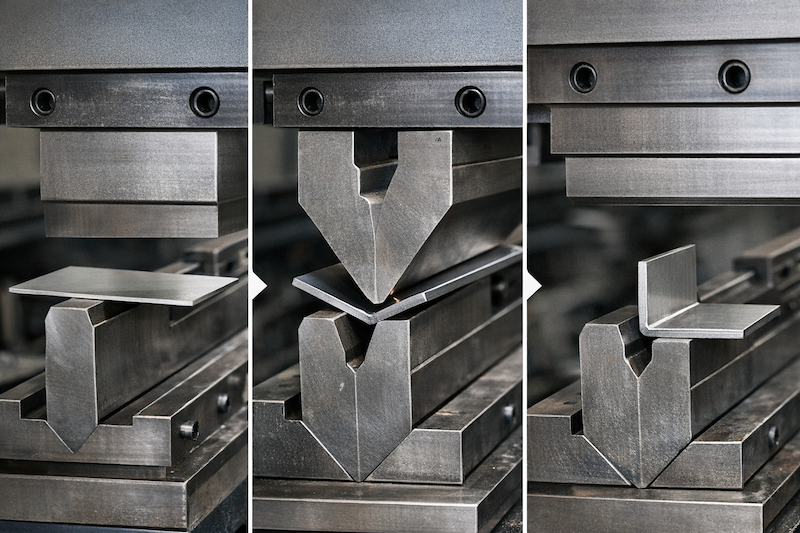 曲げ加工は、プレスブレーキなどを用いて板材を塑性変形させ、角度をつける加工です。板金加工の中で最も基本的かつ使用頻度が高い加工法です。