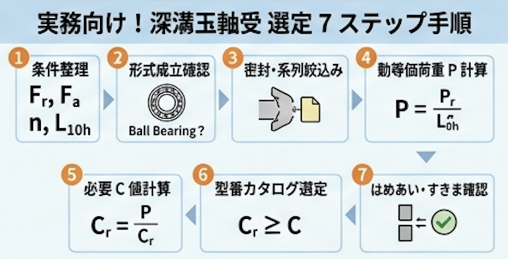実務向け!深溝玉軸受 選定 7ステップ手順