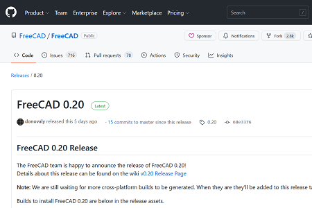 FreeCADのダウンロードは、下記公式サイトからダウンロードできます。